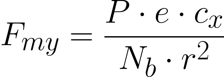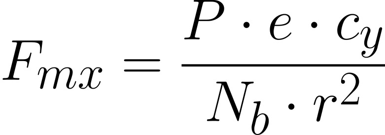 Shear Force in each bolt due to moment induced by load P in ‘y’ direction: