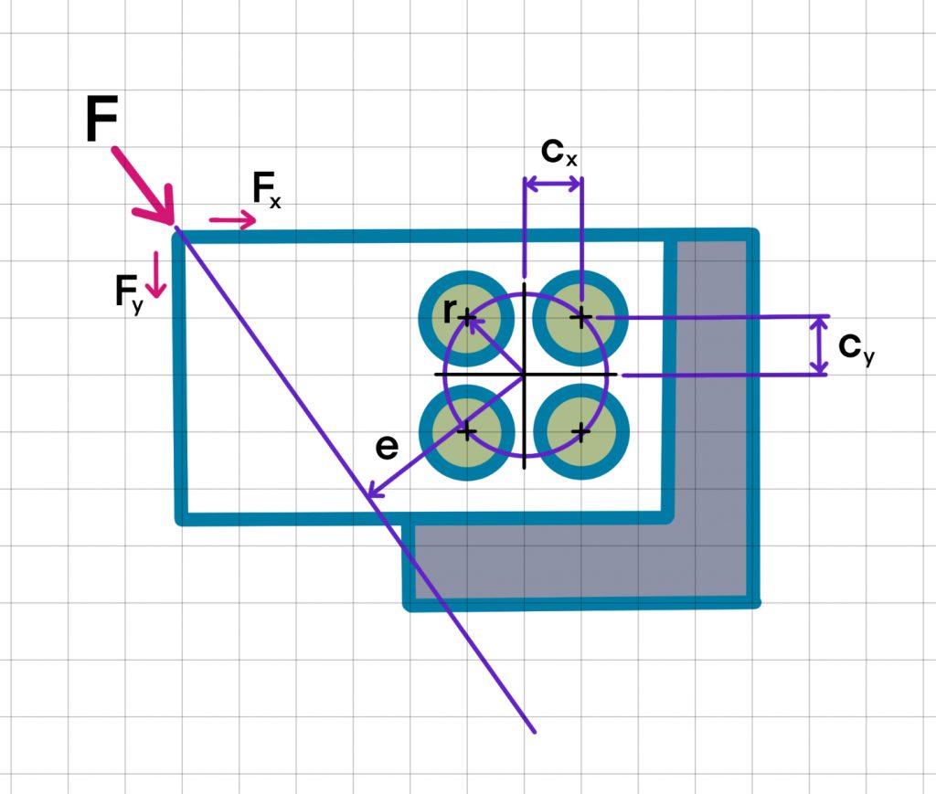 The example below assumes all bolts are common and are positioned at an equal distance from the group centroid i.e. bolts are positioned on a common PCD (Pitch Centre Diameter).