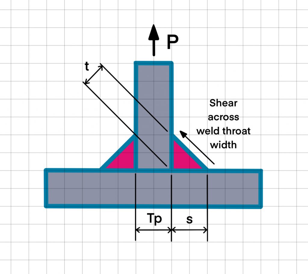 P=applied load, t=weld throat thickness,