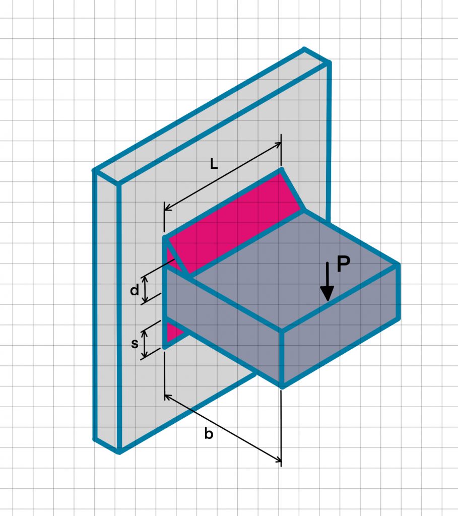 P=applied load, t=weld throat thickness, L=length of weld