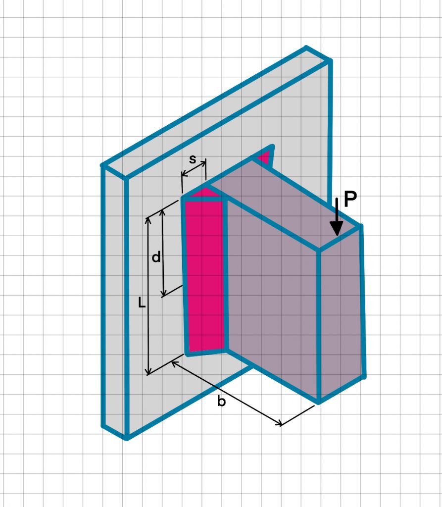 In the following we have considered a fillet weld connection supporting a cantilevered bar carrying a load at its free end.
