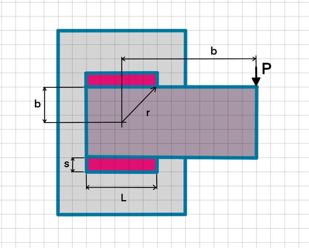 P=applied load, b=distance of P from base material,